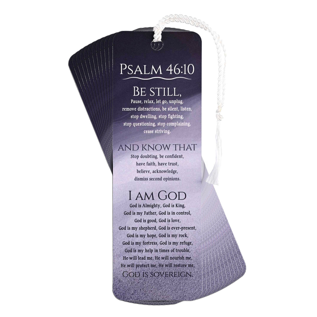 This white-tasseled bookmark features a word study on Psalm 46:10: Be still and know that I am God. Made of quality cardstock paper materials Comes as a pack of 12 Proudly made in the USA. Measures approximately 2 x 6 inches Back includes 'To and From' spaces for personalization. Share the inspiration of this powerful message with friends and family, offering a token of strength and resilience for their own spiritual journey. Contained in protective packaging Ready for easy gifting