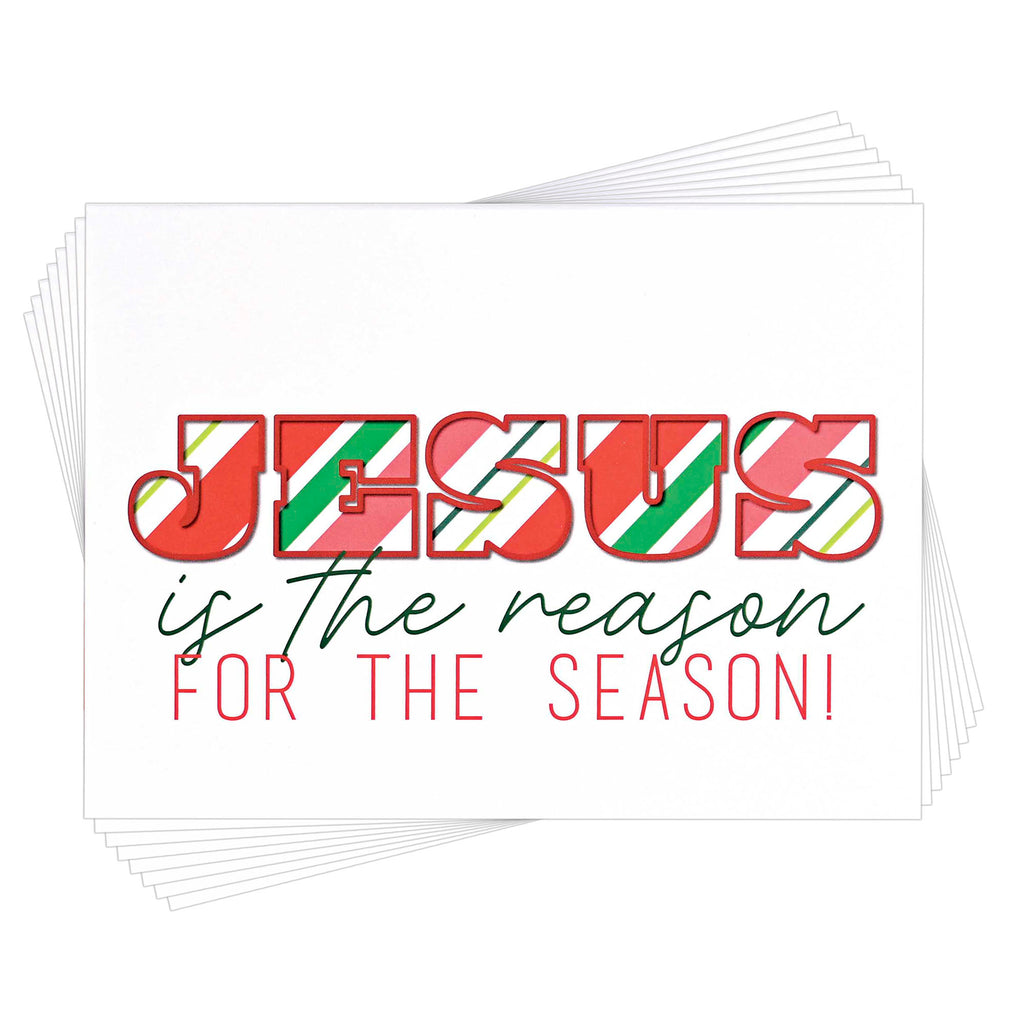 Show your loved ones you're thinking of them this holiday season with this pack of Christmas cards Presents sentiment, 'Jesus is the reason for the season'. Inside is blank for personalized messages Flap on the inside holds a gift card, cash, or check. Sold as a pack of 8 with matching envelopes Measures approximately 7.5 x 5.5 inches. Send warm wishes and artistic charm with these Christmas cards Perfect for conveying thoughtful greetings to family, friends, colleagues, and anyone you want to share the beauty of the season with. Contained within protective packaging Ready for easy gifting