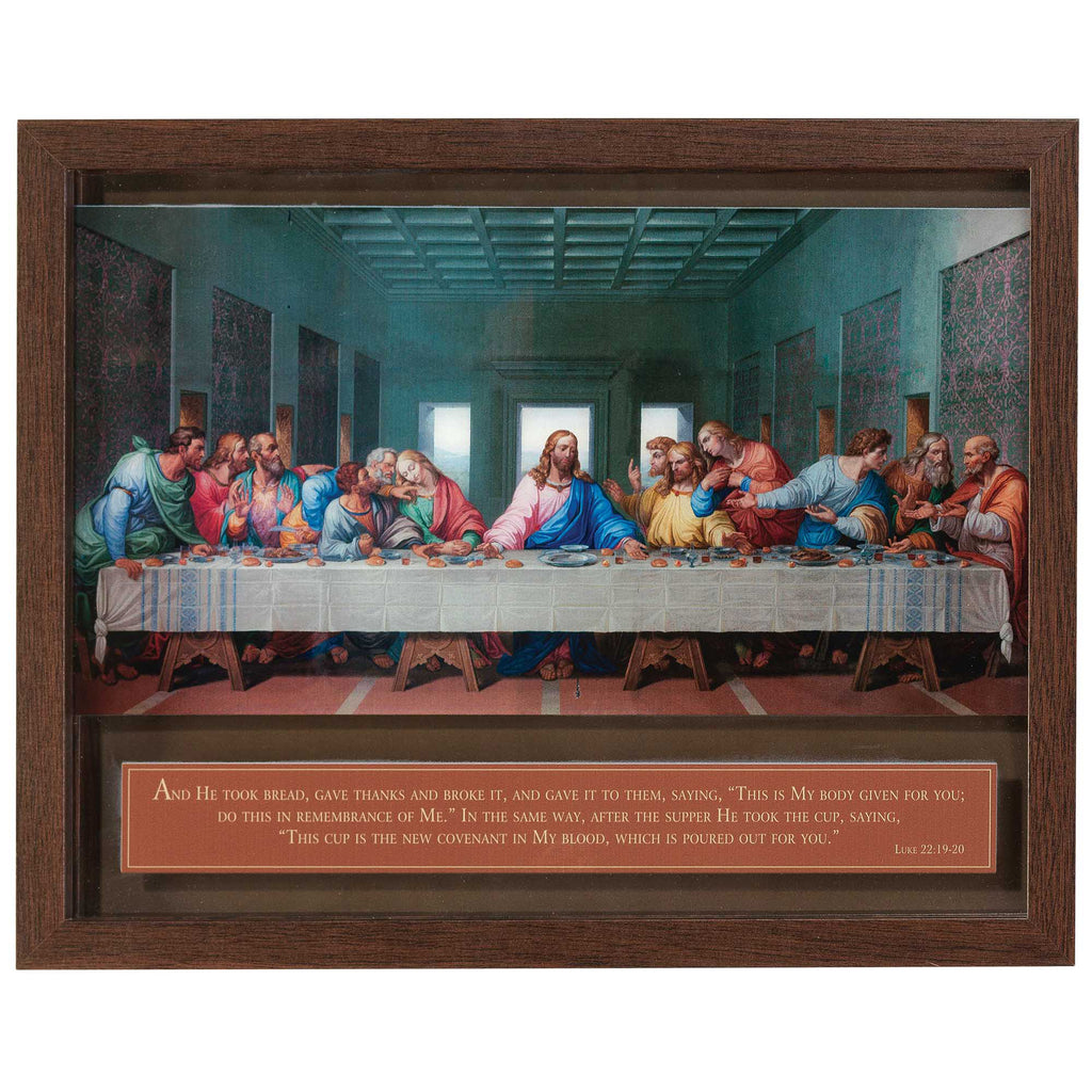 Features the sentiment "And He took bread, gave thanks and broke it, and gave it to them saying, "This is My body given for you Do this in remembrance of Me." In the same way, after the supper He took the cup, saying, "This cup is the new covenant in My blood, which is poured out for you.". Frame is made of MDF wood with classic white finish Features both triangle hanger for wall display and easel backer for tabletop display. Measures approximately 15 x 12 inches and holds an 14x11 photo if you desire to change out the artwork for a personal photo. Perfect atop a shelf, nestled on a mantel, or hanging from the wall. Contained in protective packaging Ready to be gifted for the holidays, Mother's Day, a birthday, or any special event