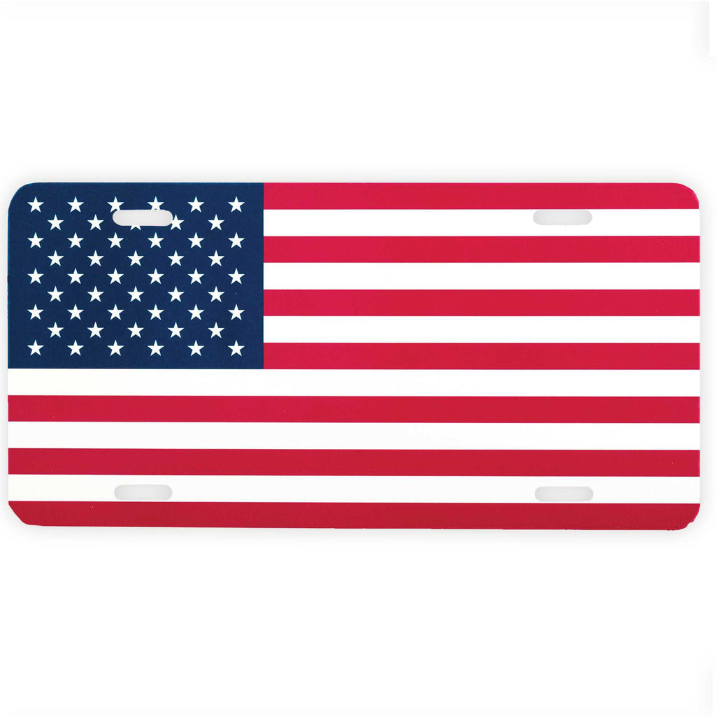 Make a statement wherever you go with this encouraging license plate frame Sublimated artwork depicts the patriotic American Flag. License frame is made of a durable metal material with 4 slots on the edge for easy mounting. Measures approximately 12 x 6 inches and fits a standard license plate space. Perfect for encouraging those you love A great faith filled message on the go. Contained in protective packaging Ready for easy gifting for a birthday, holiday, Christmas, Mother's Day or other celebration