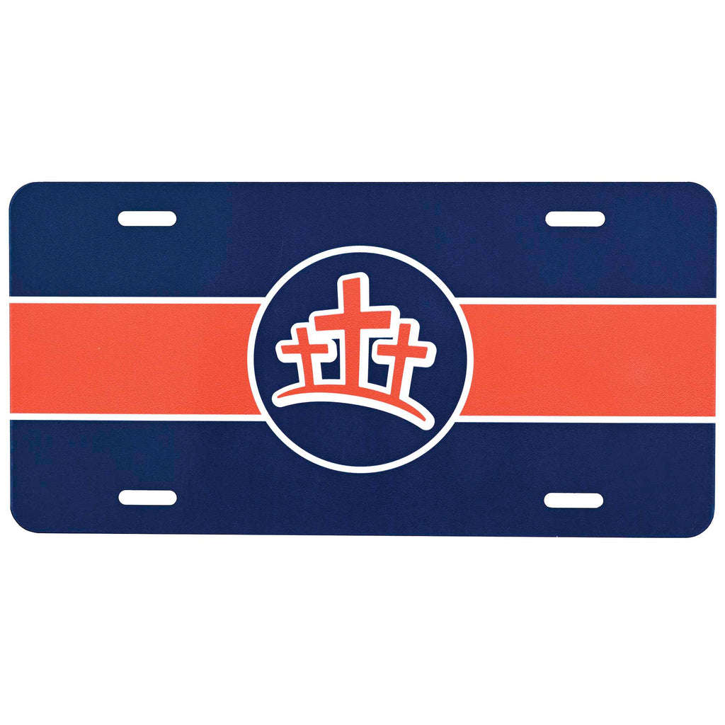 This bold auto license plate is a colorful reminder of Christ The perfect encouraging gift for a loved one. Made of aluminum Design features bold navy blue and orange lines behind an orange triple cross graphic Art is sublimated into the aluminum for permanent durability. Plate measures approximately 12 x 6 inches Includes four cut outs for easy mounting a van, car, or truck. Perfect for gifting to yourself or someone else Looks great on all types of vehicles. Contained in protective packaging Ready for easy gifting for Christmas, a birthday, an anniversary, or any special occasion!