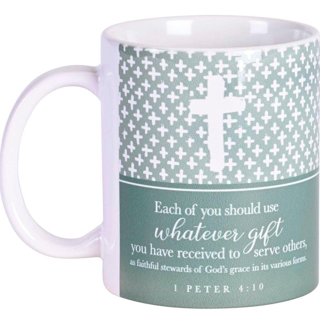 Inspirational mug features eye-catching artwork and sentiment "Each of you should use whatever gift you have received to serve others, as faithful stewards of God's grace in its various forms" 1 Peter 4:10. Coffee mug is made from a quality ceramic material Microwave and dishwasher safe. Cup holds up to 11 ounces of your favorite warmed beverage. Perfect for sipping your favorite coffee, tea, or other hot drink Makes an excellent giftable for that special person in your life great for entertainment and durable for everyday use. Contained in protective packaging Ready for easy gifting for a birthday, holiday, Christmas, Mother's Day or other celebration