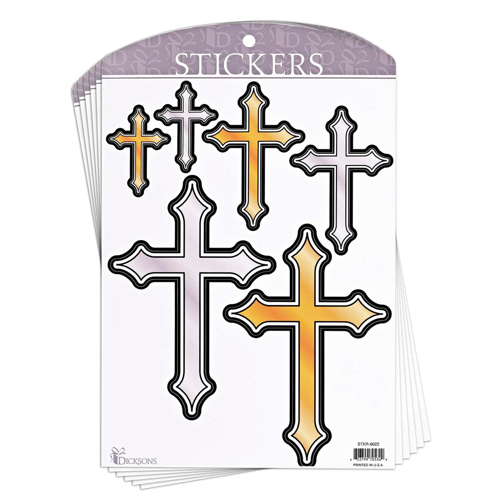 This sticker assortment features 3 different sizes and 2 different colors of crosses on each page. Crafted from high-quality vinyl, this decal is designed to be durable and weather-resistant, ensuring it stays vibrant and intact even in outdoor settings. Stickers come on a 9 x 6 inch card with 6 stickers each Comes as a pack of 6. Perfect for personalizing cars, lockers, laptops, water bottles, or walls, this versatile decal offers a meaningful reminder of divine guidance and protection. Contained in protective packaging Ready for easy gifting Proudly printed in the USA