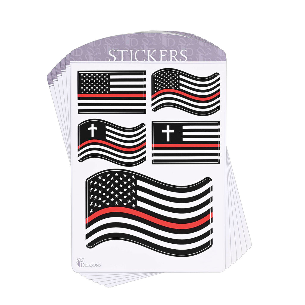 This sticker assortment features our red line flag collection to honor firefighters in the United States Comes as a pack of 6 sheets. Made from high-quality paper materials. Each sticker measures approximately 3.75 inches. Smooth and easy to apply, making it ideal for decorating personal items, water bottles, Bible covers, or scrapbooks. Contained in protective packaging Ready for easy gifting