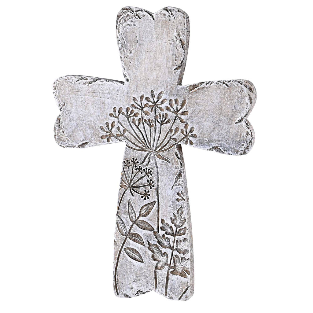 Wall cross has a gray wash look with floral accents Sawtooth hanger on back. Made of a quality resin material. Measures approximately 5.75 x 4 inches. Hang in your living room, bedroom, or office, and let the timeless words inspire and uplift you each day Share the gift of faith and love with friends and family by gifting them this beautifully framed print. Contained in protective packaging Ready for easy gifting